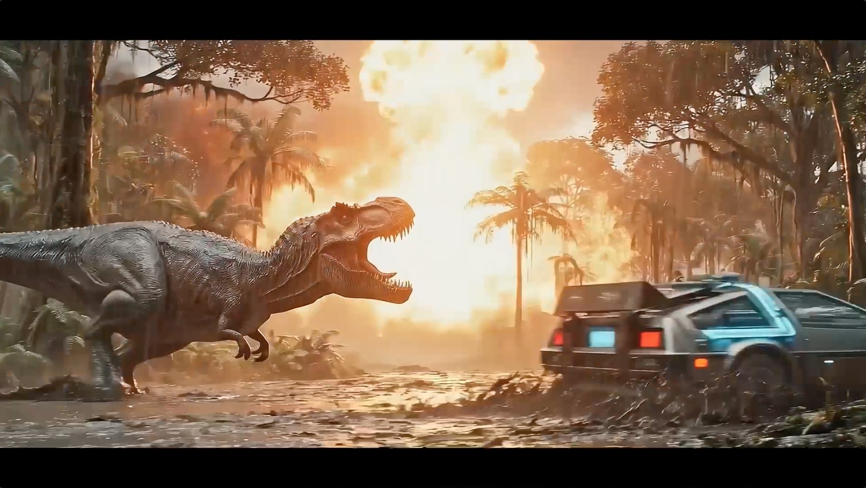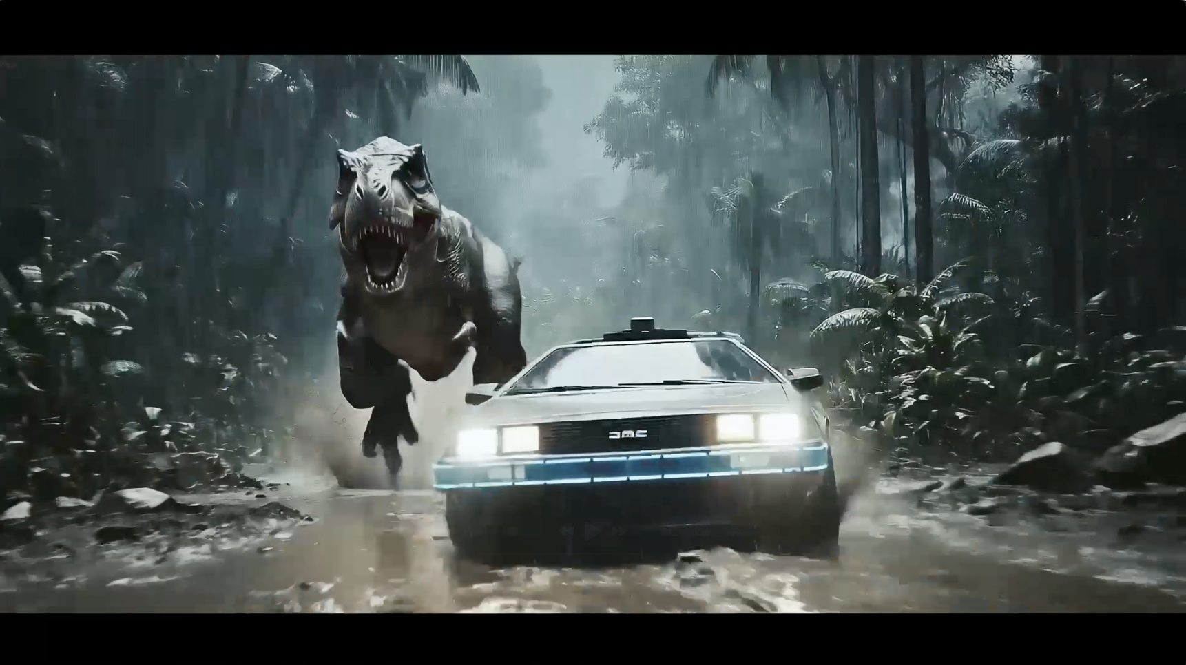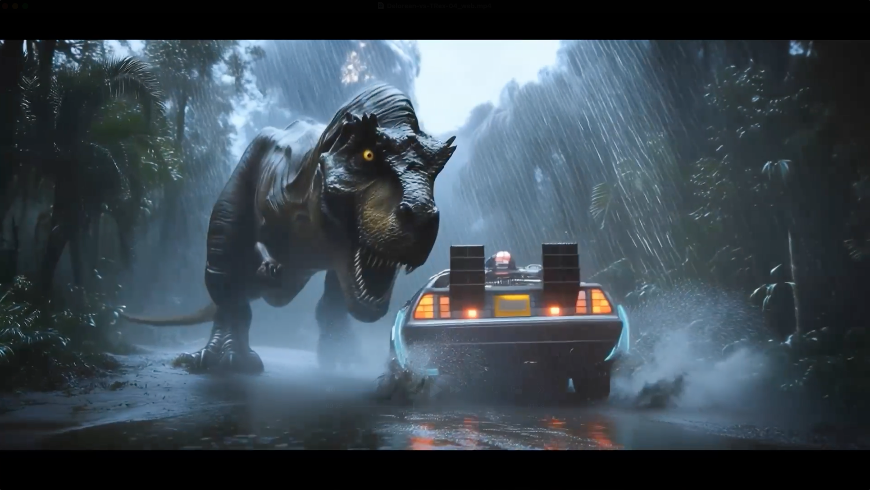 BTTF – DeLorean vs. T-Rex (KI-Film)
